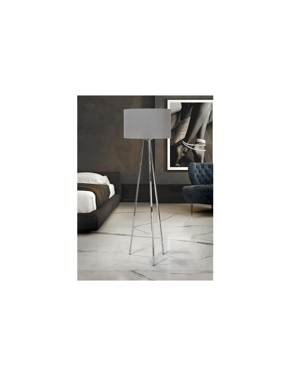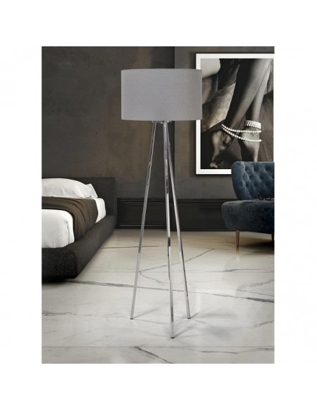CANDEEIRO PE ALTO TRIPE QUADRADO 059/P CROMADO C/ ABAJOUR CREME COR 633 - 05059P