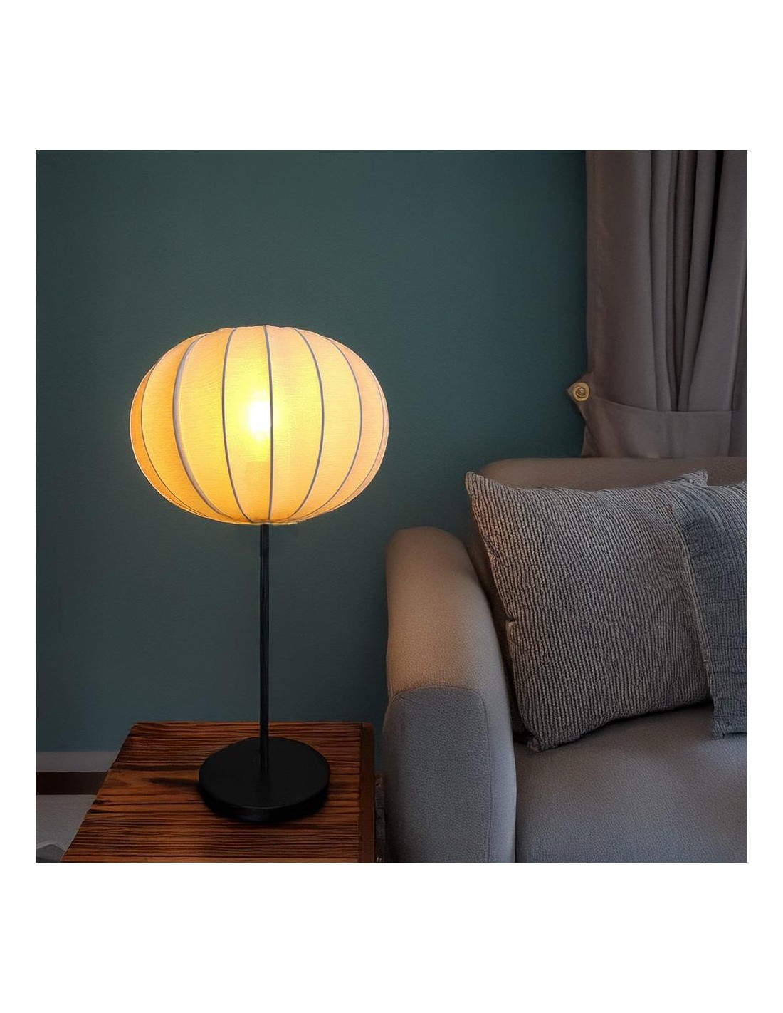 CANDEEIRO DE MESA EM FERRO C/ ABAJUR EM ALGODAO - 75645
