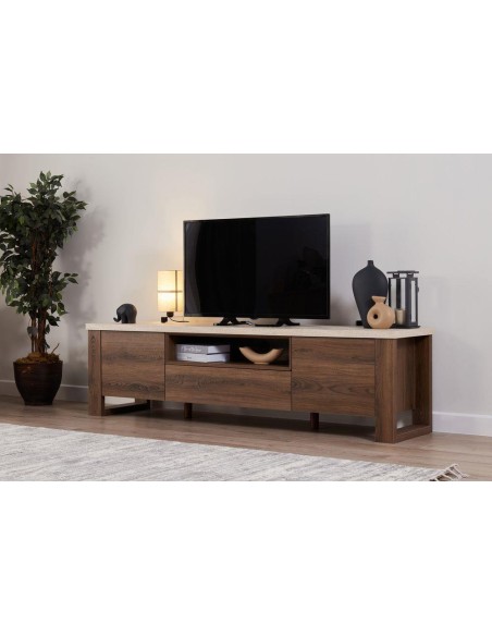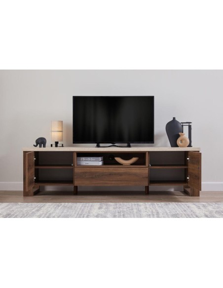 ELEMENTO TV 200*49*56 MADERA DARK WALNUT+TRAVERTINE