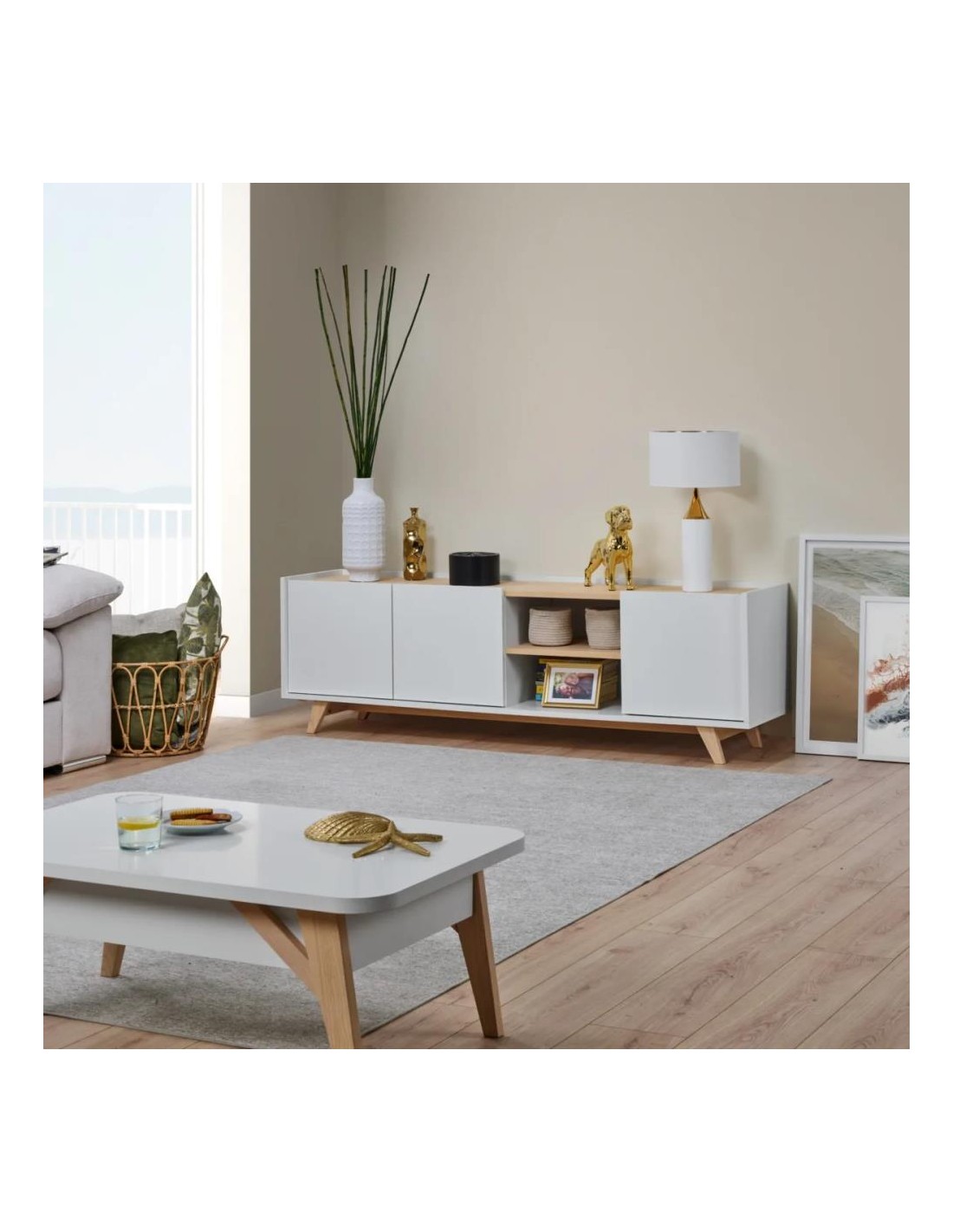 BASE TV IBIZA MODULO 3P+1PRAT 176*42*55 - BRANCO/FREIXO