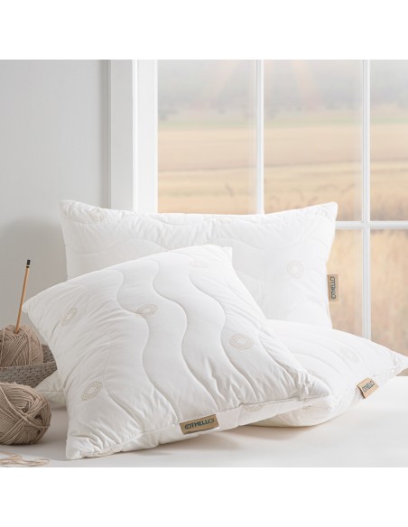 É uma almofada alta com 770gr. Recomendado para quem dorme de lado e de costas. É preenchida com 50% de lã pura britânica e 50% de mistura de fibras virgens HCS. O tecido exterior é 100% lã pura britânica à prova de fiapos.