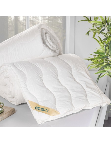 É um produto fresco com um grau de aquecimento de 2 em 5. É ideal para quem quer uma colcha fresca com uma sensação suave e leve. Oferece-lhe o conforto saudável do bambu e do algodão durante muitos anos.