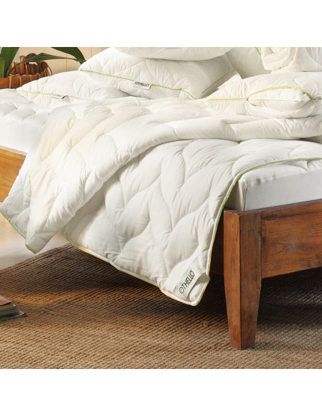 Amigável para a pele, naturalmente refrescante com Aloé vera. Com sua fórmula extra macia e toque sedoso, nosso tecido extra é leve, altamente absorvente, grosso e resistente a rugas. Grau de aquecimento de 4 em 5.