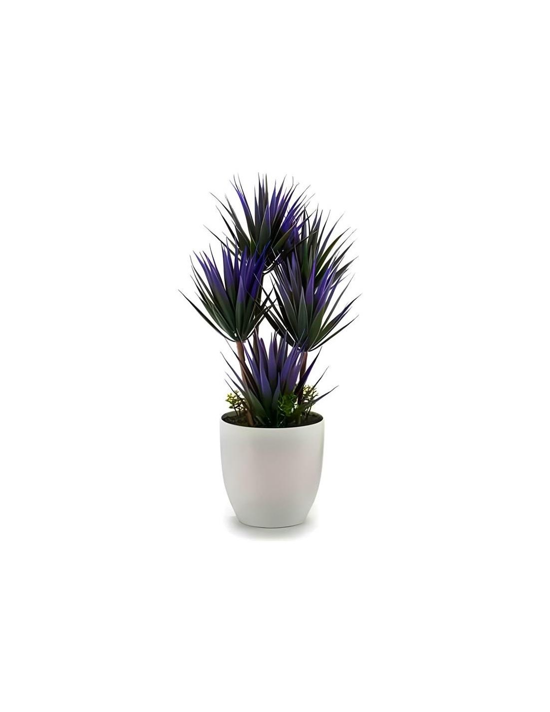 PLANTA ARTIFICIAL VERDE/ROXA C/VASO REDONDO BRANCO PALMEIRA 12*19*39 - 22205