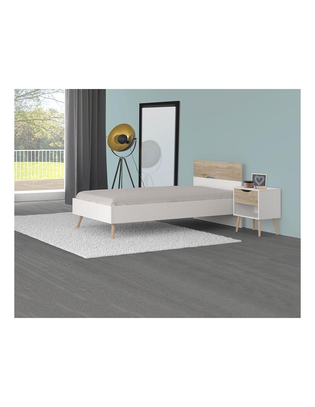 COMPOSIÇÃO: Cama c/ estrado para colchão 195*90, 1 mesa de cabeceira 44*35*56 e secretária 100*50*74,5
