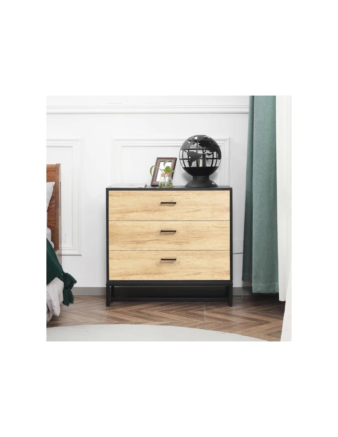 COMODA 3 GAVETAS AFEIRA LOOK 80*35*75 PRETO/CARVALHO (1VOLUME) - CF4035