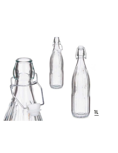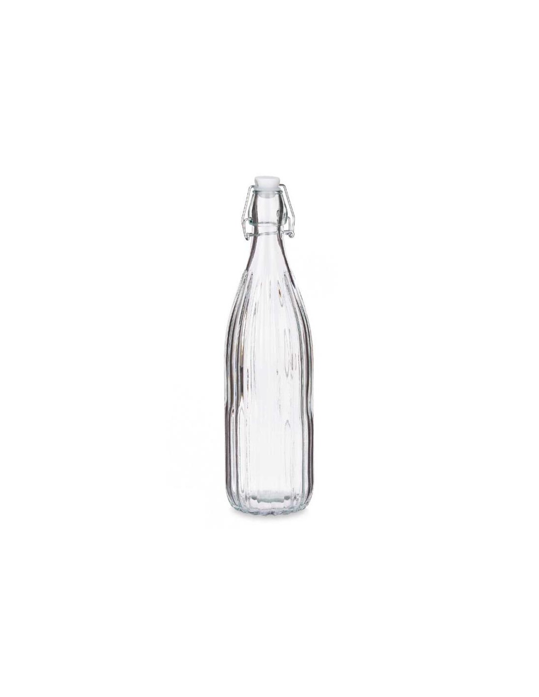 GARRAFA VIDRO RISCAS VERTICAIS C/TAMPA BRANCA 1Lt - 82258AR