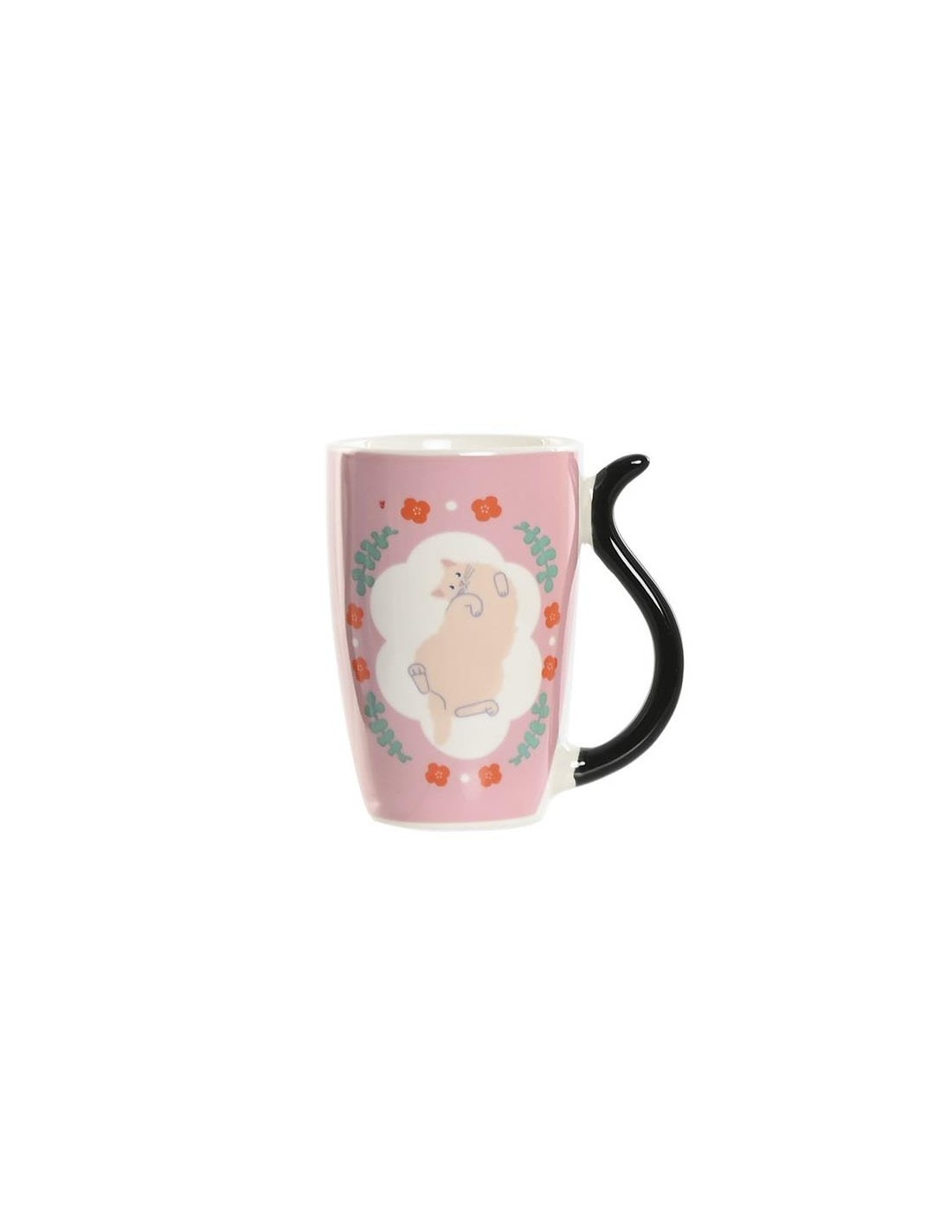 CANECA PORCELANA ROSA C/GATO 11*8*12 380ml - PC-219240