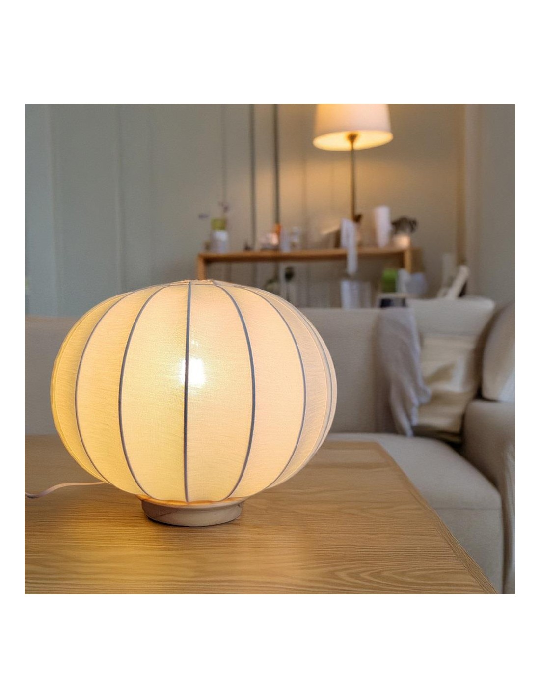 CANDEEIRO DE MESA EM FERRO C/ ABAJUR EM ALGODAO 33*25CM - 75643