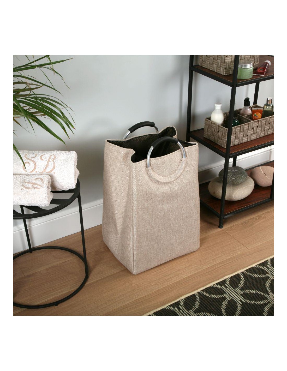 CESTO DE ROUPA C/ASA 46*30*55CM BEGE...