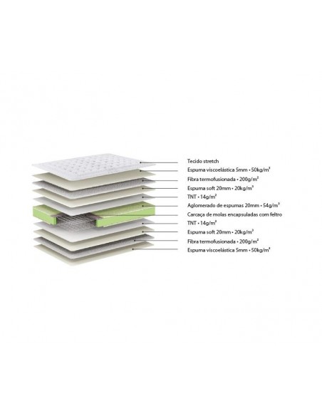 Construído em torno de um núcleo de molas bonel encaixado numa moldura estabilizadora, é um colchão resistente, durável e confortável. O sistema feltrobox reforça todo o perímetro do colchão para que não deforme, mesmo quando o peso é aplicado junto ao rebordo. O topo em viscoelástica confere-lhe uma adaptabilidade perfeita.