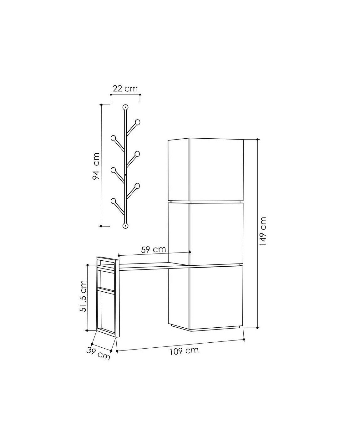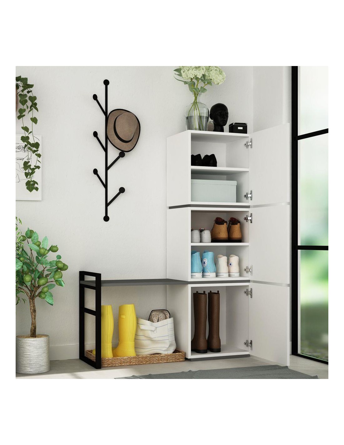 BENGALEIRO AFEIRA MELLO HALLWAY STAND 109*39*149 WHITE - ANTHRACITE - M.P.16429.2