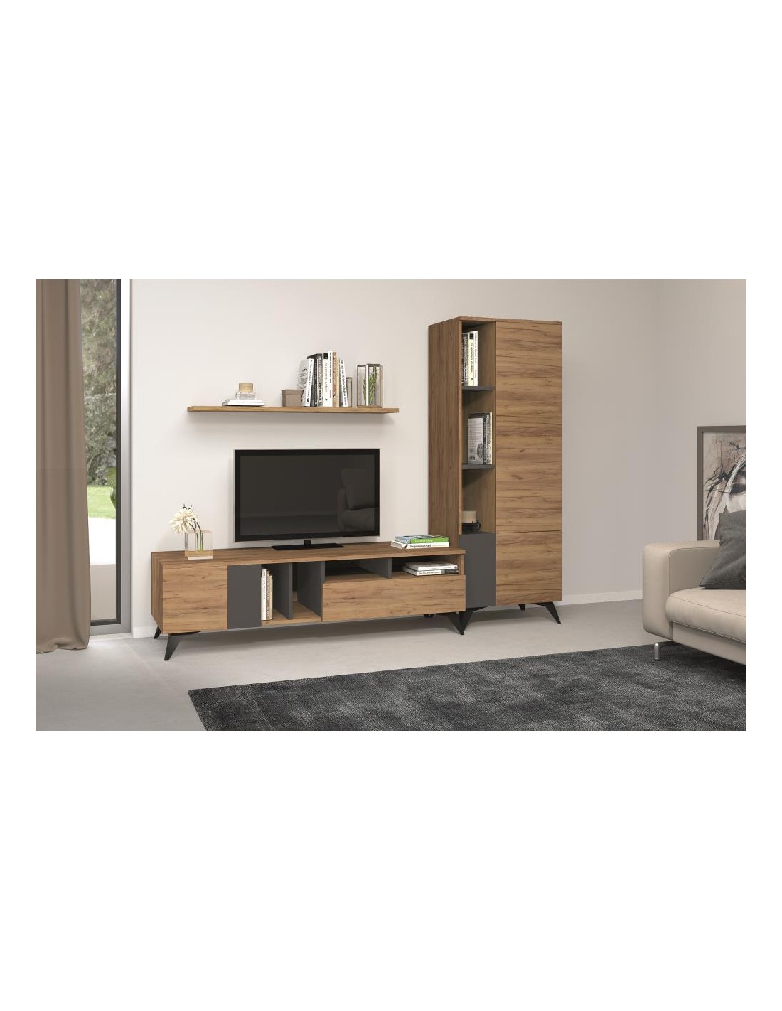 BASE TV CELTA 2G+1P + VAO C/PES METAL 170*50*50 CARVALHO GOLD/ANTRACITE - CE.001.06