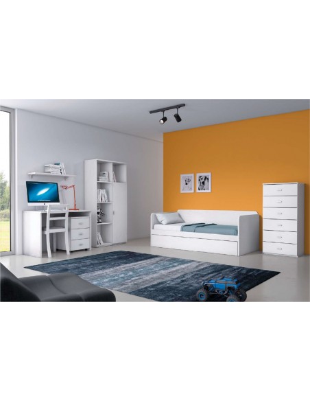 COMPOSIÇÃO: Cama c/ gavetão p/ colchão 190*090, Elemento Prateleiras c/1Porta e Secretária.