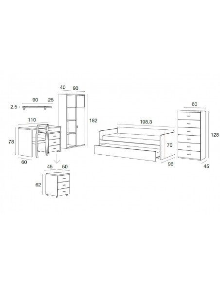 OPCIONAL: Camiseiro, Bloco gavetas c/ rodas, Prateleira e Cadeira.