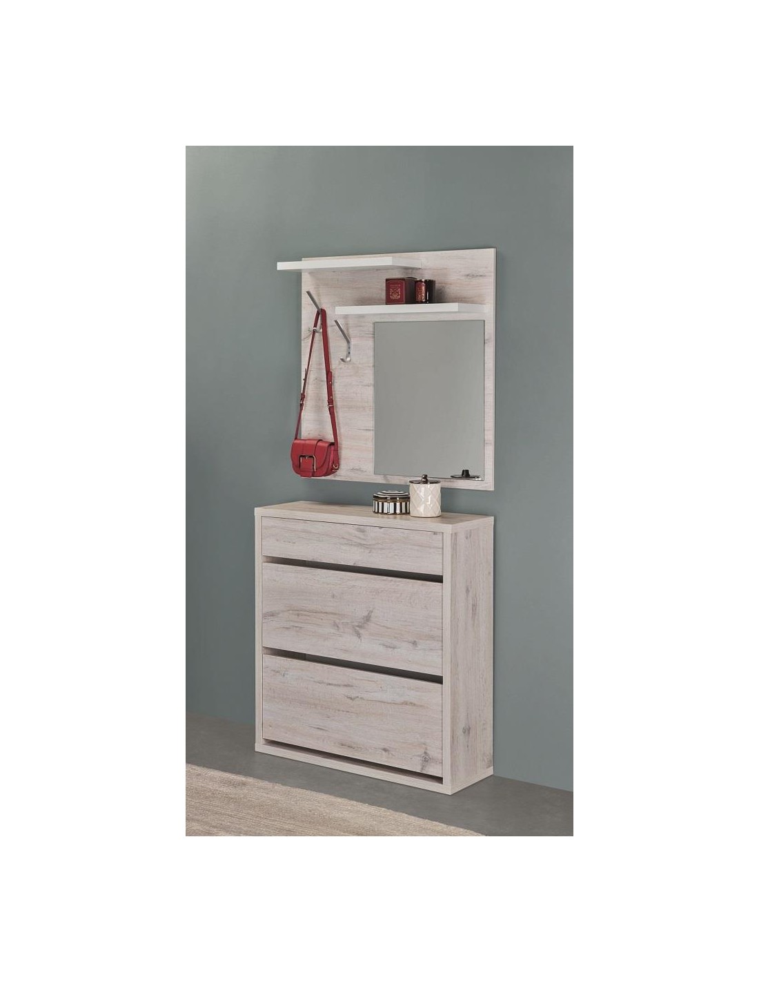 BENGALEIRO 5102 (SAPATEIRA 90*22*90 + ESPELHO C/PRATEELIRAS E CABIDE 90*97) - MELAMINA