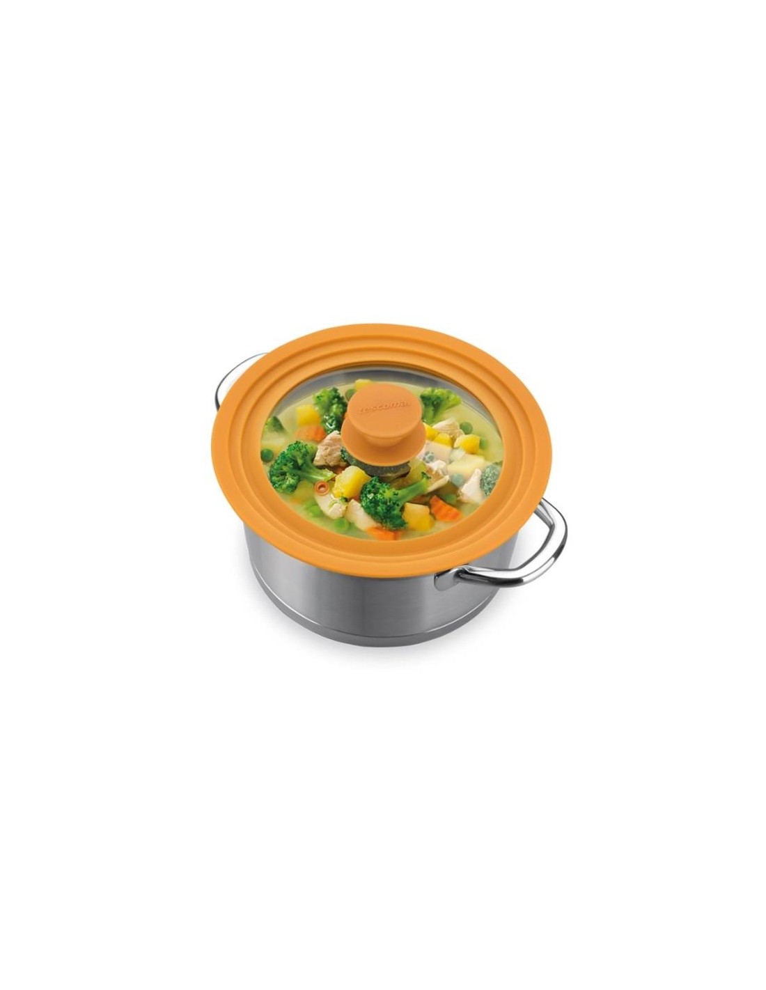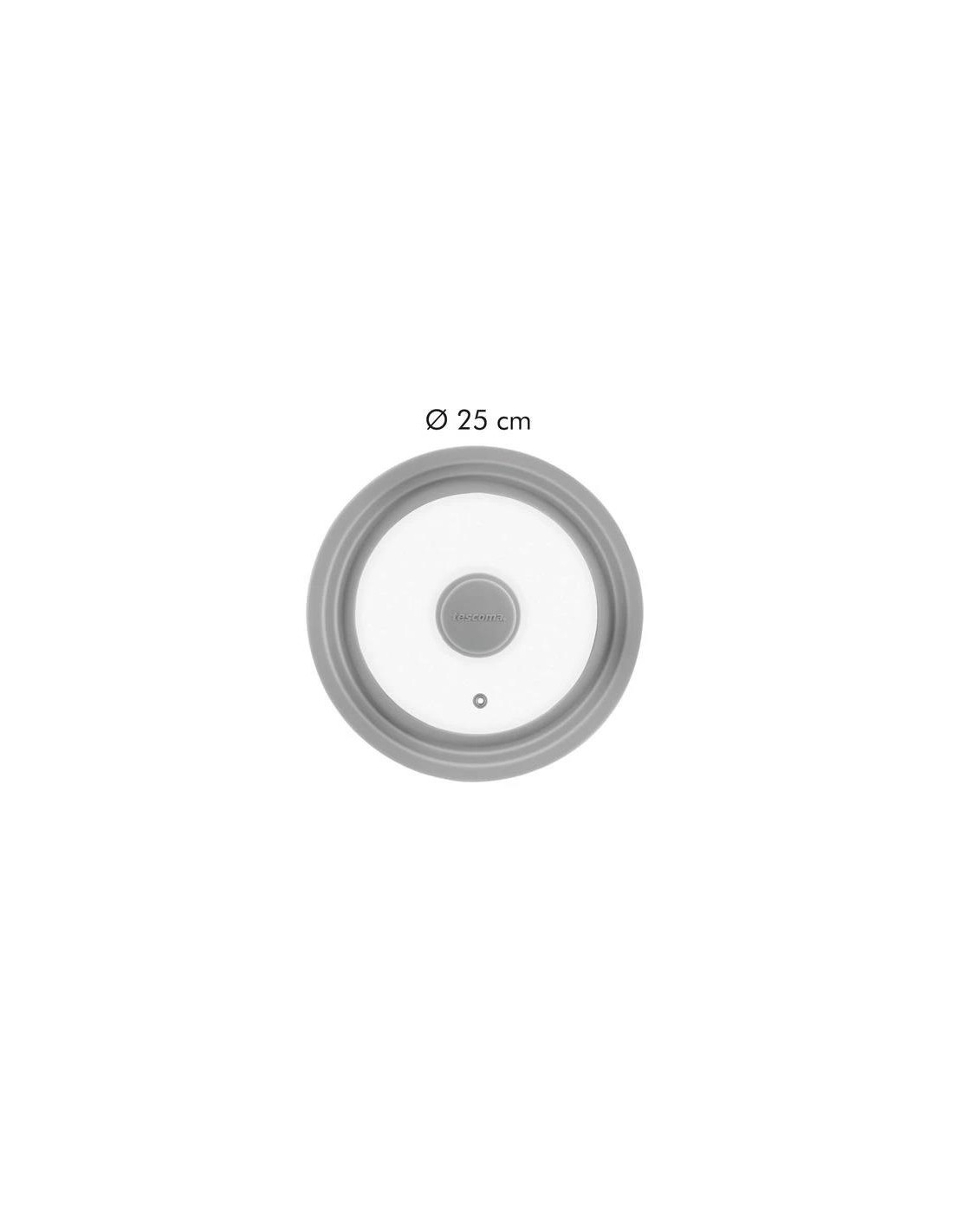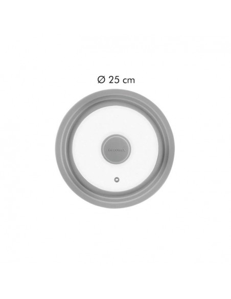 Tampa universal adequada para tachos, panelas e frigideiras TESCOMA ¤ 16, 18 e 20 cm. Fabricada em vidro resistente e silicone resistente ao calor. Pode ir ao forno (max. 200º C).