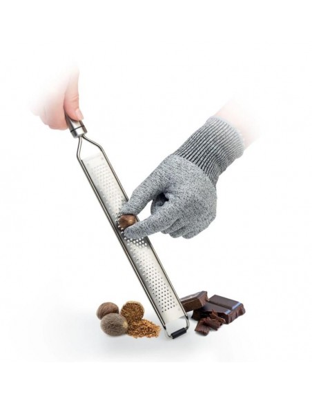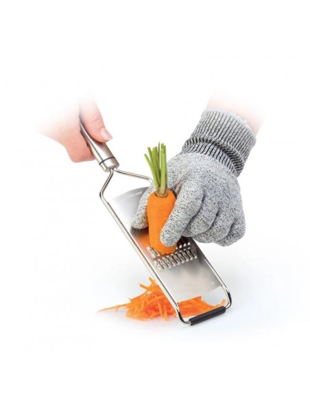 Protege a mão contra lesões quando corta, descasca, raspa frutas e legumes com objetos afiados, descascadores e facas e ao dividir e desossar carne, peixe, etc. Fabricado em tecido sintético altamente resistente, adequado para destros e canhotos.