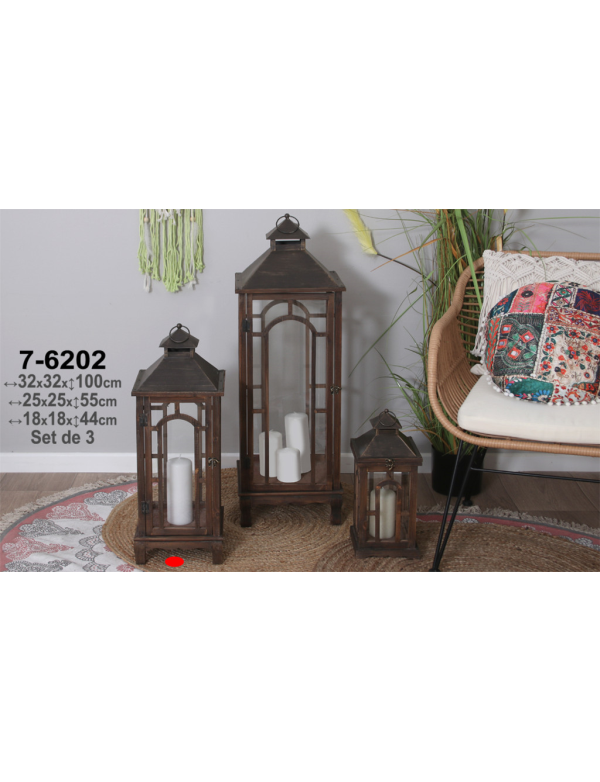 FAROL PORTA VELAS MADEIRA/VIDRO MEDIO 25*25*55 - 76202