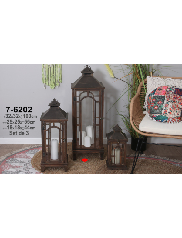 FAROL PORTA VELAS MADEIRA/VIDRO GRANDE 32*32*100 - 76202