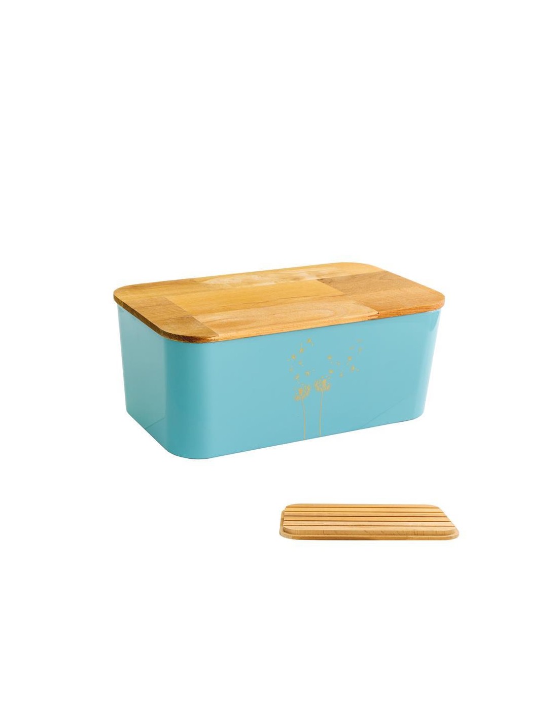 CAIXA DE PÃO AZUL C/ TAMPA EM MADEIRA...