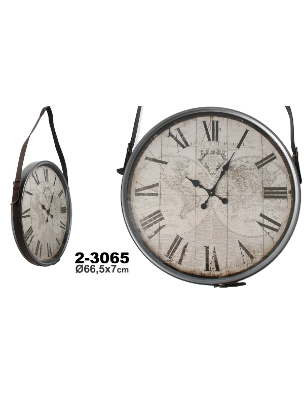 RELOGIO PAREDE HIERRO MAPA MUNDO C/ CINTO POLIPEL - 23065