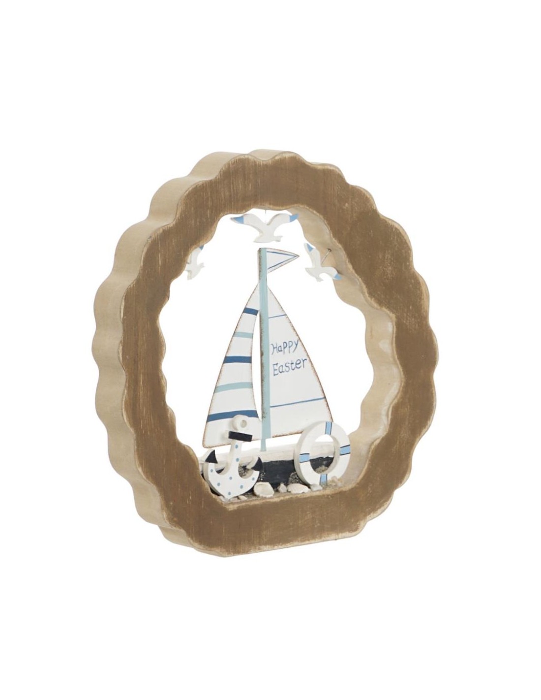 FIGURA DECORACAO MADEIRA/METAL C/BARCO 20*2.5*20 - LN-210854