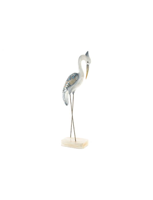 FIGURA MADEIRA GRAVADA GARÇA AZUL 25*16*86 - FD-142486