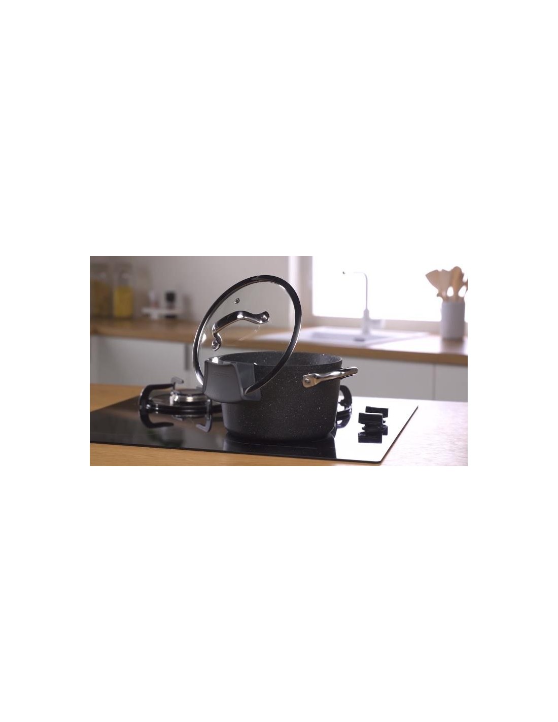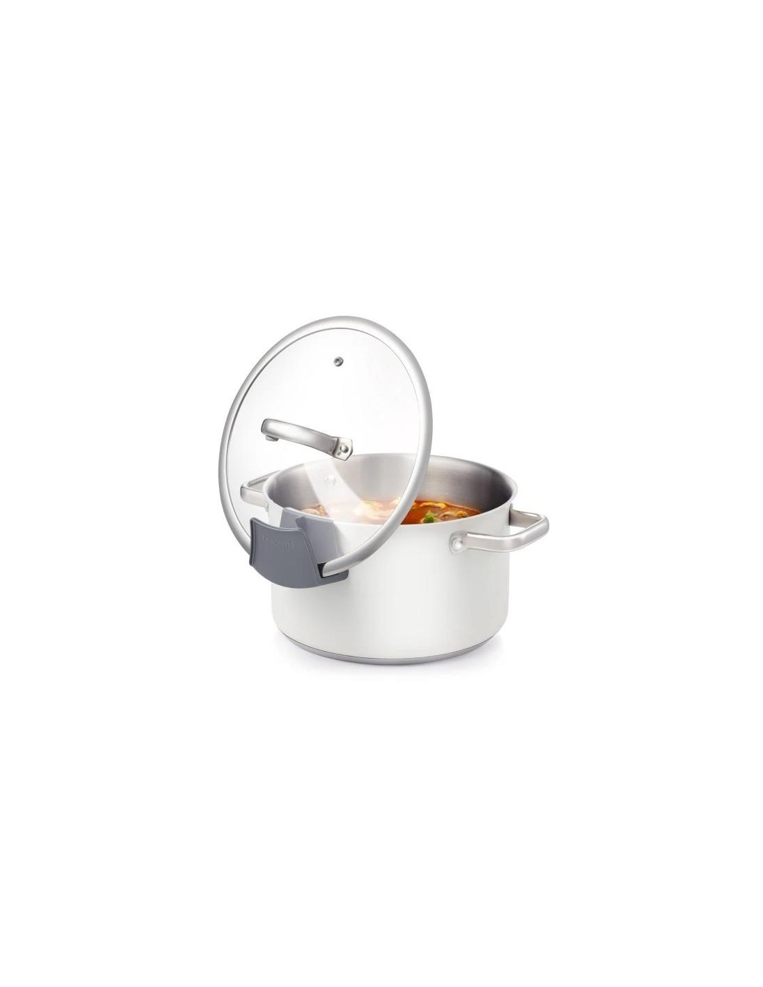 Excelente para colocar tampas nas bordas de todos os tachos e panelas TESCOMA. O vapor condensado das tampas permanece no suporte sem sujar o fogão ou a bancada. Fabricado em plástico resistente ao calor. Pode ir à máquina de lavar louça. 3 anos de garantia. Aviso: Não usar o suporte ao cozinhar em fogões a gás!