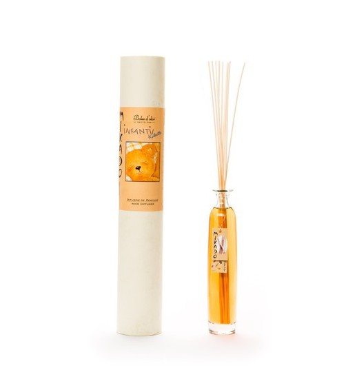 Difusor de ambiente natural à base de varas de vime, uma maravilhosa fibra vegetal que absorve e difunde a fragrância de uma forma progressiva, delicada e muito duradoura.