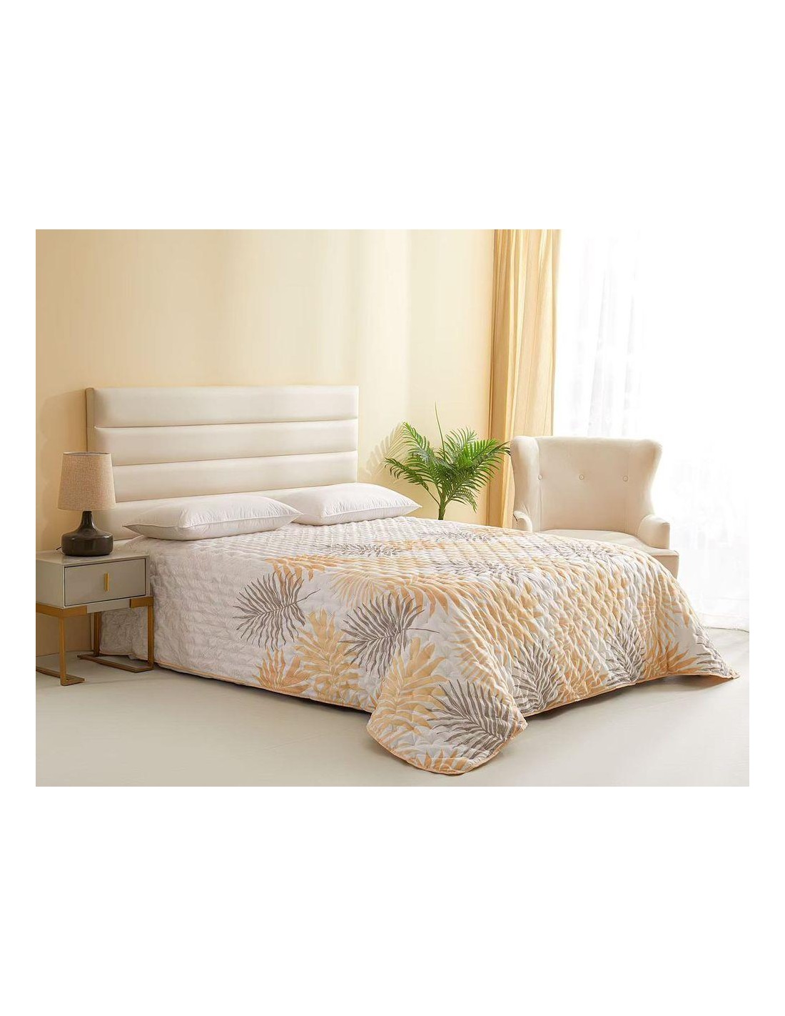 COLCHA 100% POLIESTER 240*260 BEGE C/FOLHAS N02 - 03.2580