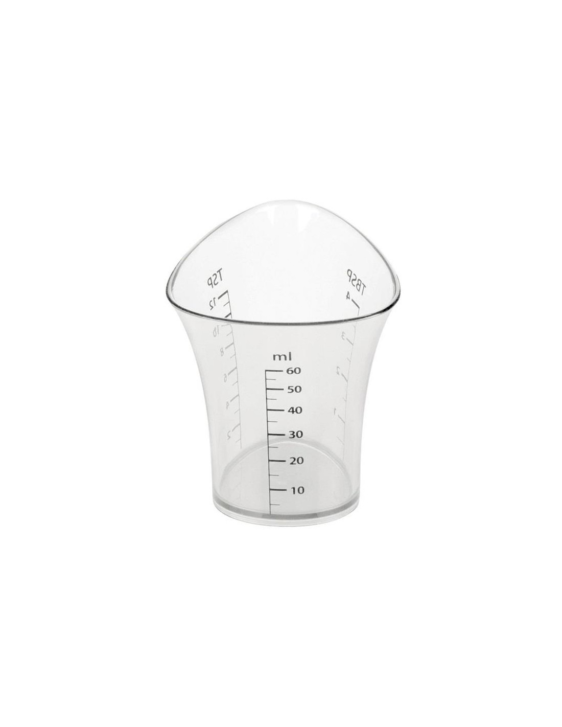Excelente para medir com precisão liquidos e ingredientes em mililitros, colheres de chá (tsp) e sopa (tbsp). Fabricado em plástico resistente. Pode ir à máquina de lavar.