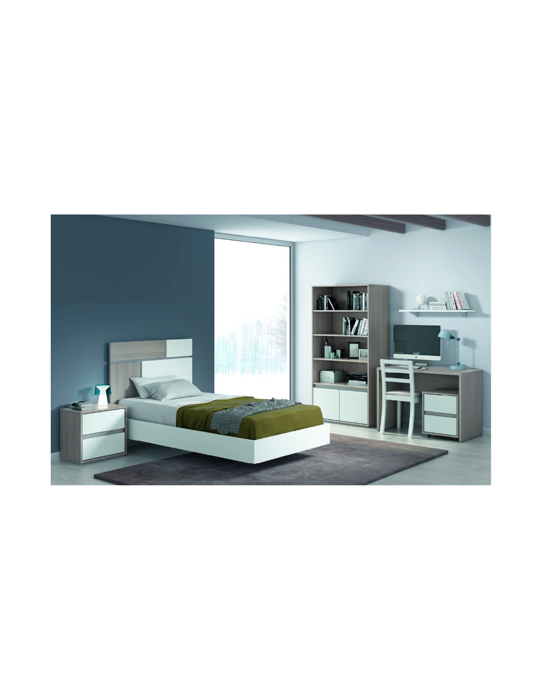 COMPOSIÇÃO: Cama para colchão 195*110 (122*203,5*110); Mesa Cabeceira 55*35*51,5 cm; Secretária 110*60*78cm